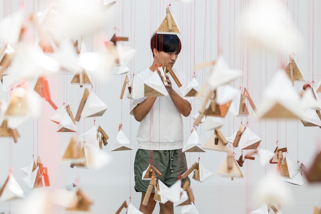 Présent durant les 4 jours du Festival, l’artiste chinois Ban Lei (°1990) – ayant obtenu, en 2022, un « master en arts », de l’ « HEAD » (« Haute Ecole d’Art & de Design »), à Genève – nous présente, au rez-de-chaussée du « Tambour » du « Delta », ses « Returning Birds », une installation participative de 153 “oiseaux-soufflets”, suspendus au plafond, que nous pouvons actionner, transformant la salle d’exposition en un instrument partagé.