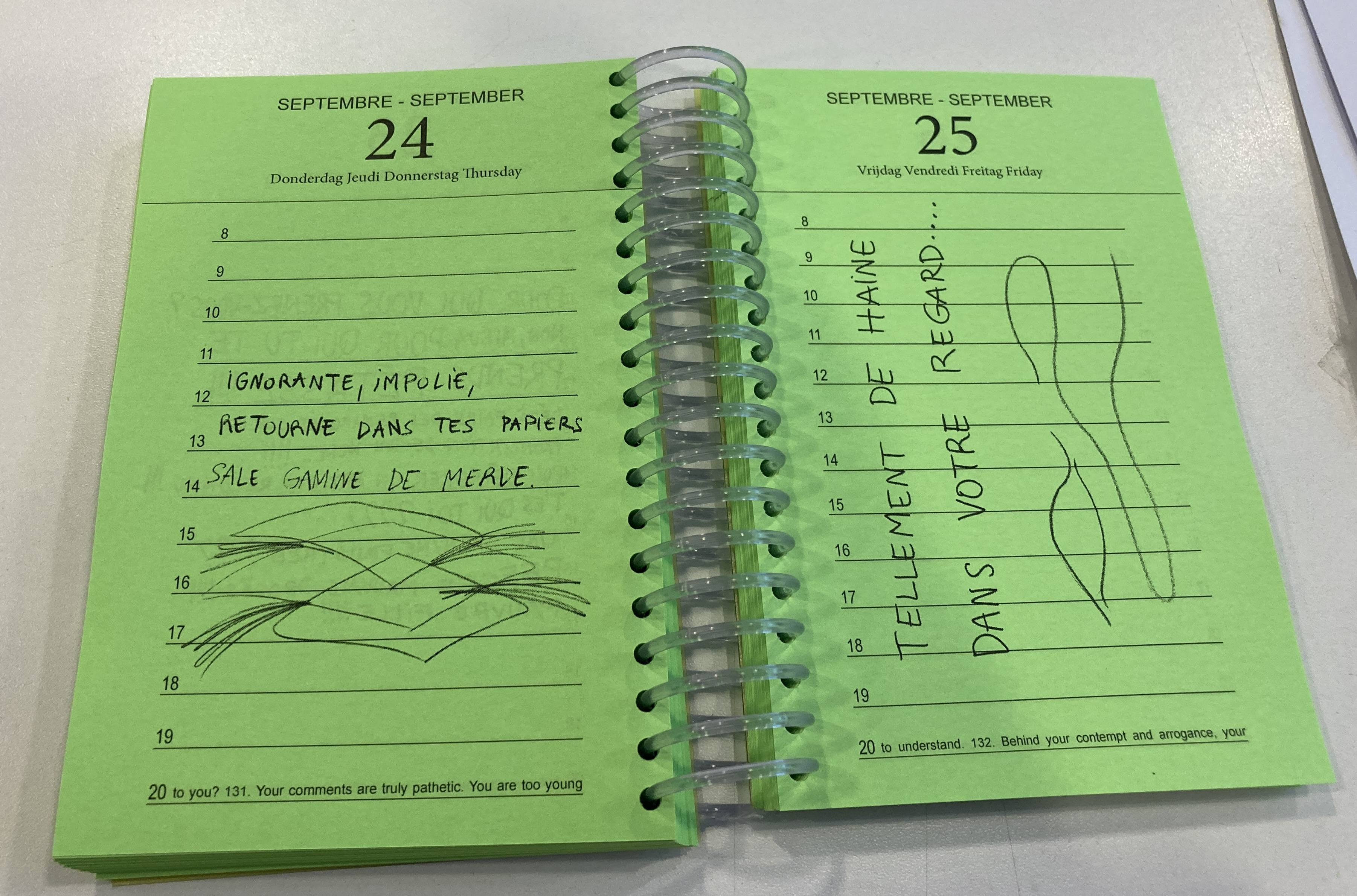 Commentaires ignobles rapportés sur l’agenda « Honte à Elle » © Sandrine Morgante