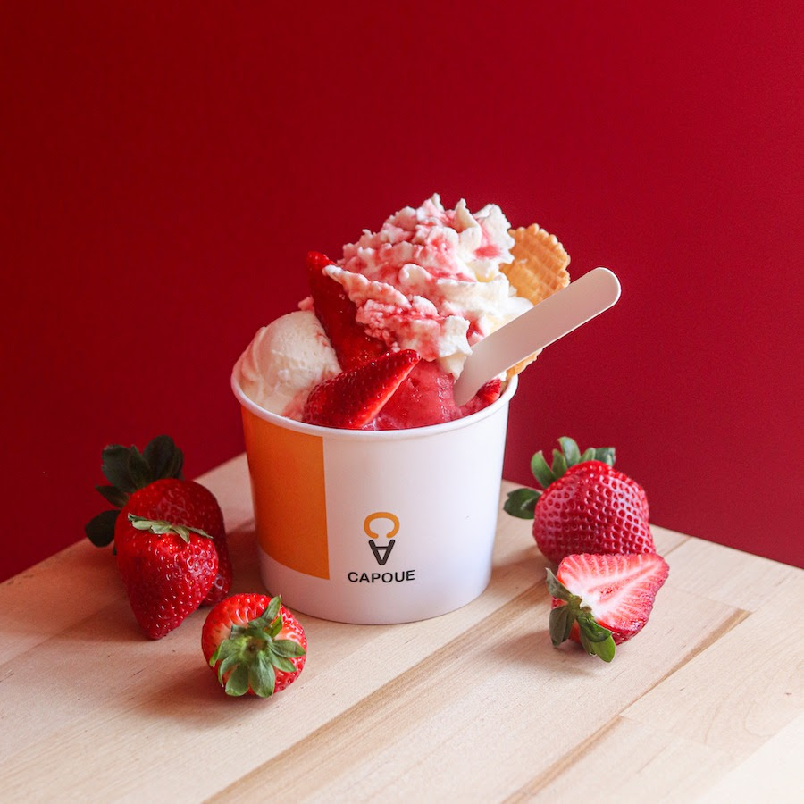 Chez Capoue, chaque glace est le reflet d’un vrai savoir-faire artisanal. En collaboration avec un meilleur ouvrier de France, Capoue teste et utilise des produits novateurs pour perfectionner l’équilibre de ses recettes. Les matières premières nobles comme la vanille de Madagascar et les fraises locales de Gerpinnes sont privilégiées pour sublimer chaque création. Dans l’atelier de Pailhe, en province de Liège, les glaces sont élaborées sans colorants, texturants ni conservateurs, selon des méthodes qui ont évolué pour rester à la pointe de la qualité et de l’innovation.
