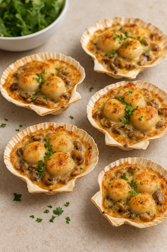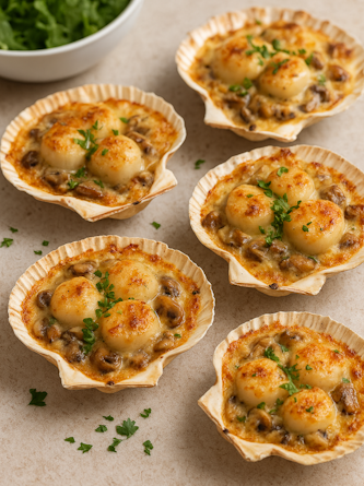 Coquilles Saint-Jacques gratinées façon grand chef (pour 8 personnes)