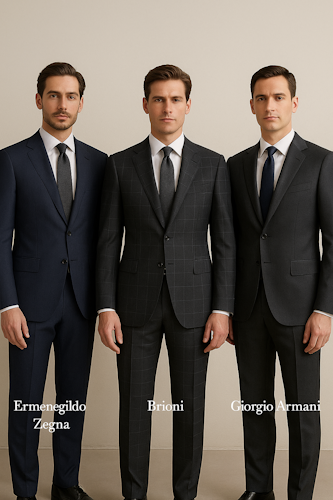Elles couvrent différentes gammes de prix et de style : de l’élégance luxueuse et artisanale (Brioni, Zegna), au prêt-à-porter accessible mais chic (Hugo Boss), jusqu’à des compromis élégants/moderne (Armani, Canali).