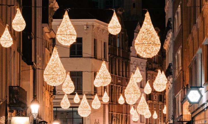 Depuis 2013, la Ville de Bruxelles illumine ses quartiers commerçants grâce à des décorations suspendues et à des installations artistiques. Les illuminations de 2025 s’étendent et se renouvellent dans plusieurs artères du centre-ville et de Laeken, mêlant créations inédites et installations upcyclées.