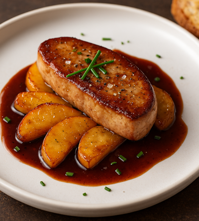Foie Gras Poêlé, Pommes Caramélisées & Sauce au Porto