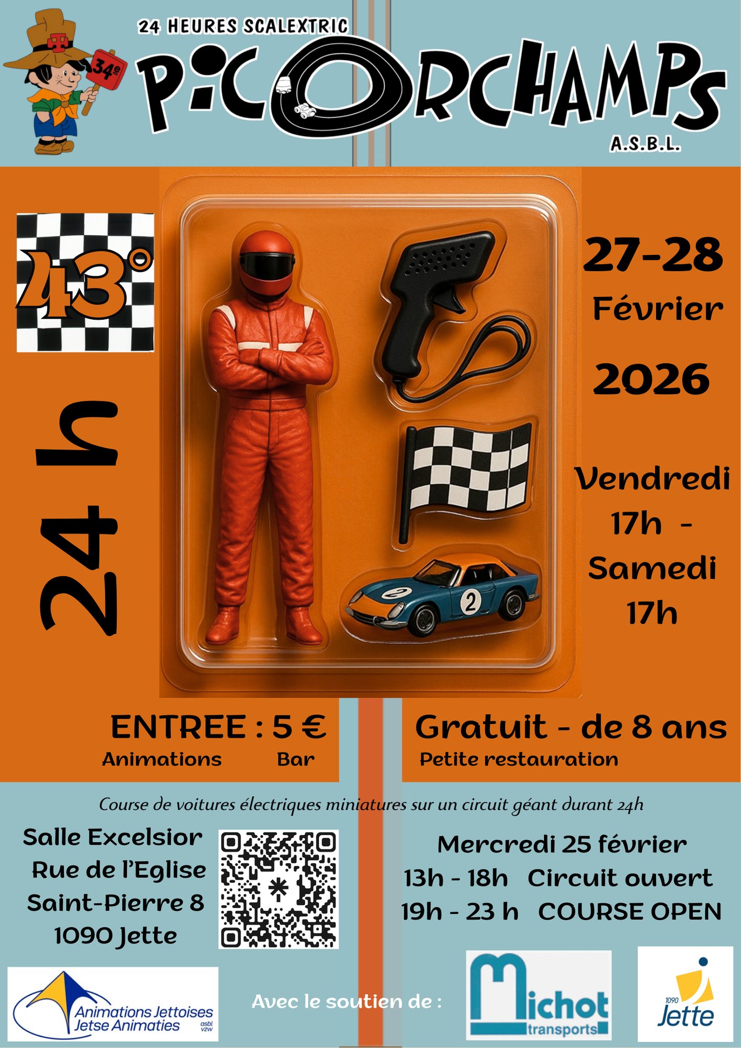 Les 24h de Picorchamps les 27 et 28 Février 2026, Salle Excelsior, Rue de l’Eglise St-Pierre 8, Jette.