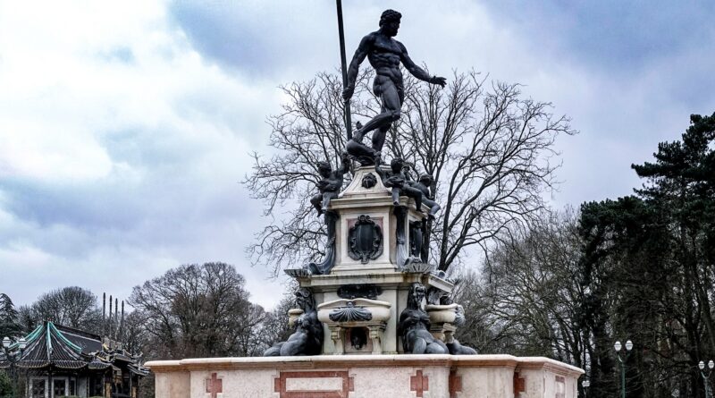 Nichée dans les jardins paysagers qui entourent le majestueux Pavillon chinois, la Fontaine de Neptune est l’un de ces trésors artistiques que beaucoup croisent sans en connaître l’histoire. Pourtant, cette œuvre décorative s’inscrit dans un projet ambitieux et visionnaire : celui du souverain Léopold II, grand amateur d’architecture, d’urbanisme et de mises en scène monumentales. À la fin du XIXᵉ siècle et au début du XXᵉ, il entreprend de transformer les abords du Domaine royal de Laeken en un vaste ensemble artistique mêlant influences européennes, exotisme et références antiques.