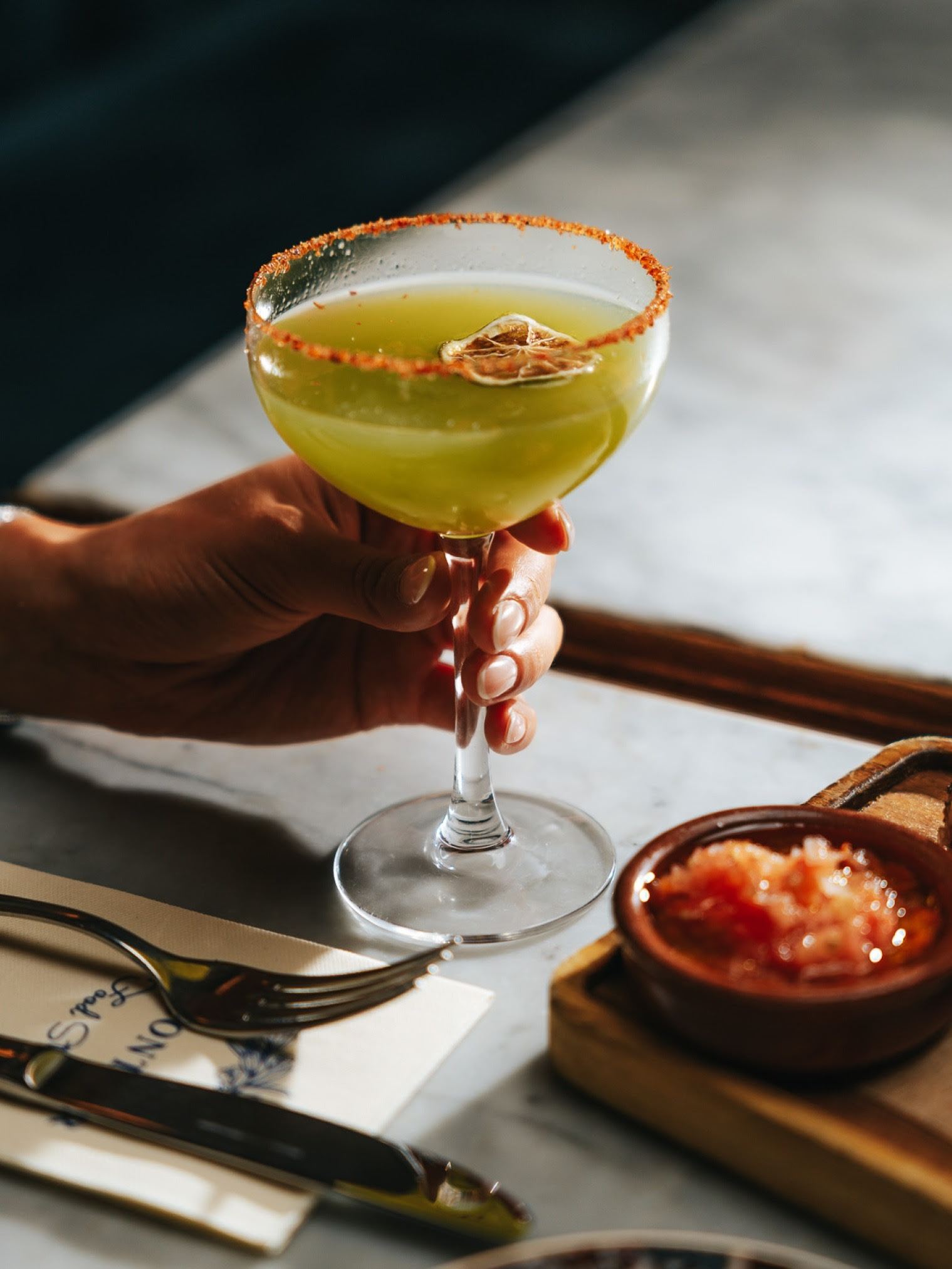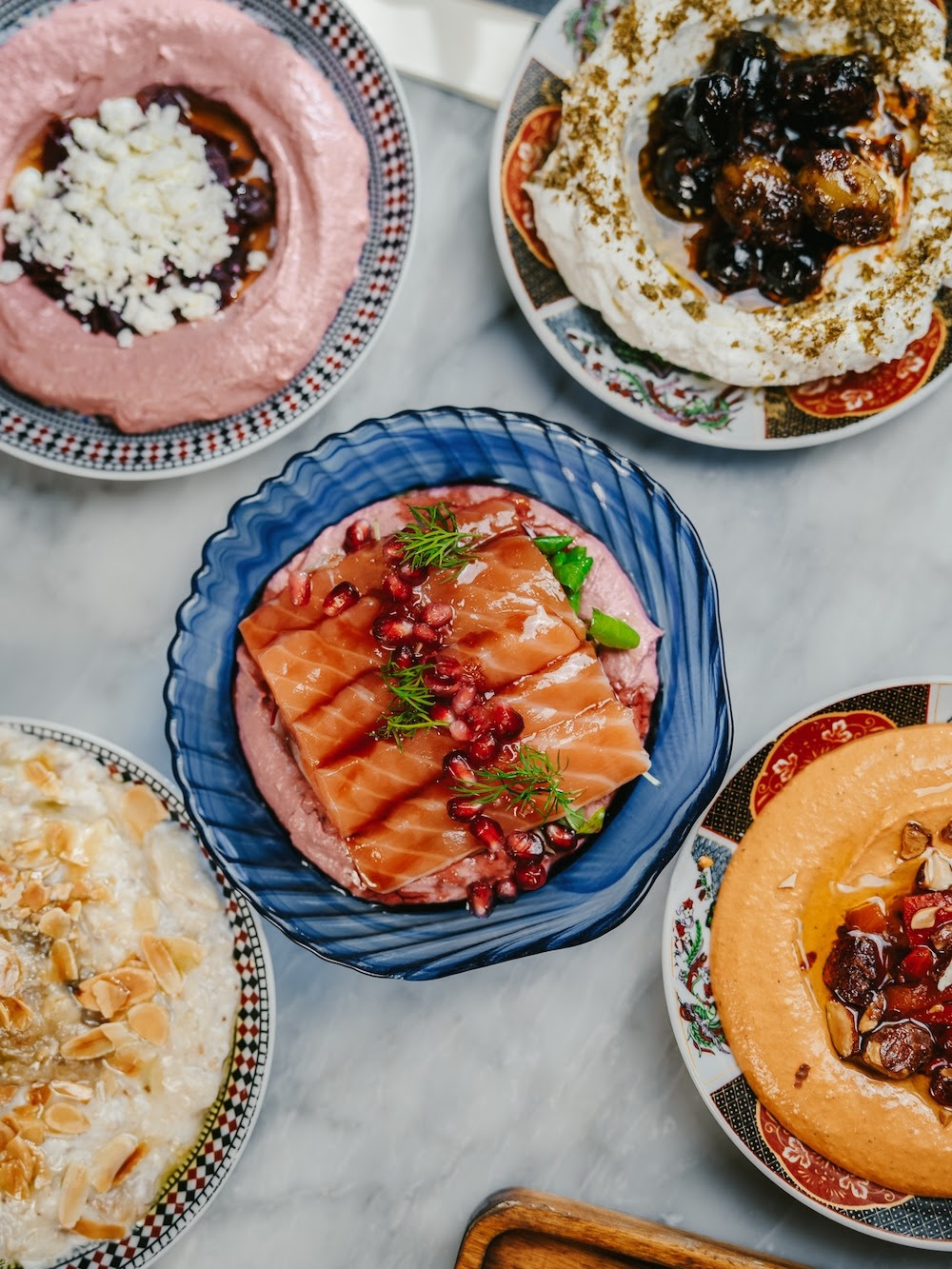 Au cœur de l’expérience, la cuisine joue un rôle central. Inspirée des rives de la Méditerranée et du Moyen-Orient, elle se distingue par sa générosité, ses textures et ses épices maîtrisées. Les assiettes sont pensées pour être partagées, mais jamais au détriment de la précision ou de l’esthétique.