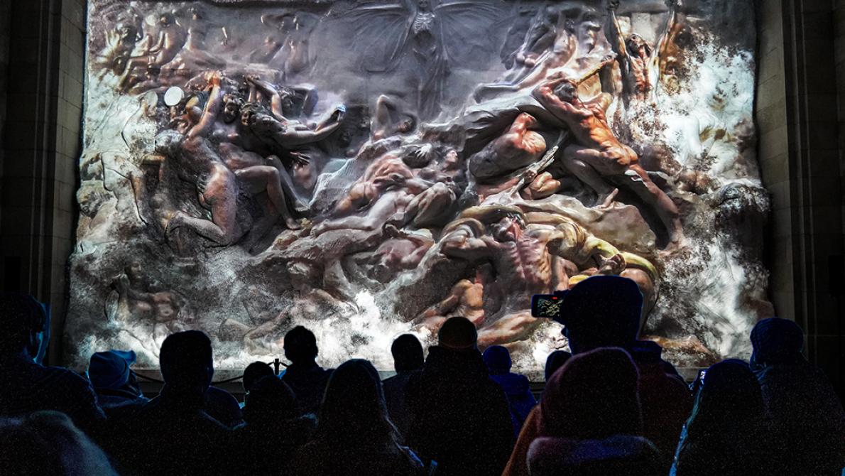 Jusqu’au 8 mars 2026, le Pavillon des Passions Humaines, également connu sous le nom de Pavillon Horta, ouvre exceptionnellement ses portes en soirée. Le public pourra y découvrir le monumental haut-relief de Jef Lambeaux à travers une projection lumineuse et musicale de l’artiste Antoine Goldschmidt.