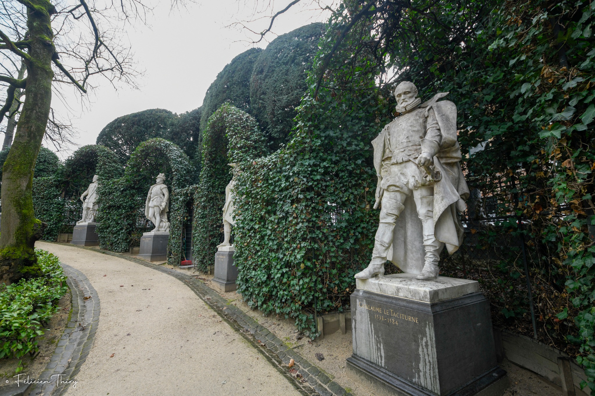 L’ornementation végétale du Petit Sablon n’est pas seulement décorative, elle est riche de symboles. Les neuf massifs de buis taillé qui ornent la pelouse représentent les neuf provinces belges de l’époque, tandis qu’un autre massif, conçu en forme de couronne, évoque la Belgique dans son ensemble. Ces détails subtils confèrent au jardin une dimension culturelle et patriotique, qui en fait un lieu chargé d’histoire.