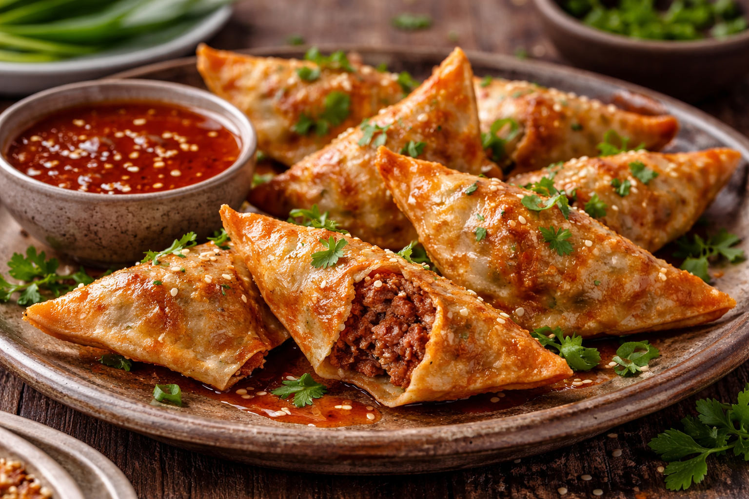 Ravioles croustillantes au bœuf épicé, sauce aigre-douce maison — version AirFlyer