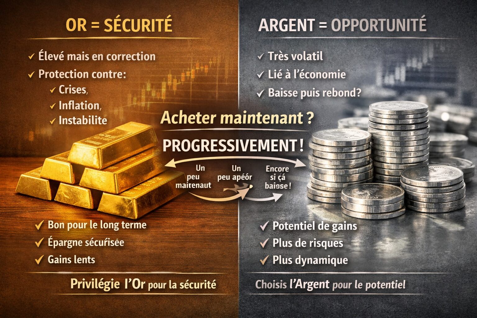 • Argent → plus spéculatif, potentiel de hausse plus rapide