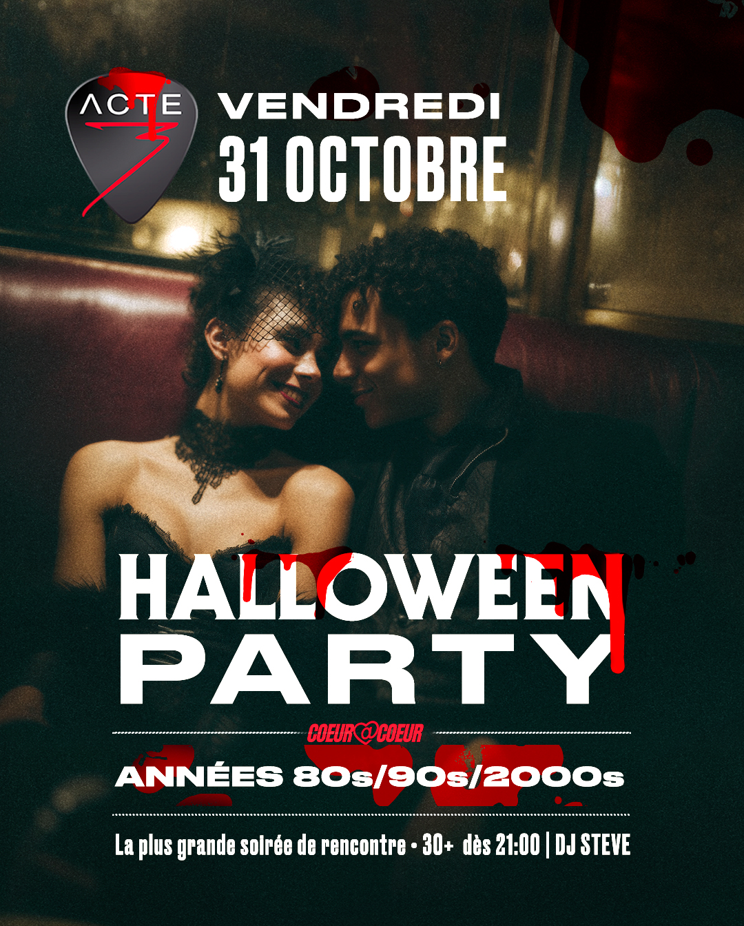 COEUR💕COEUR & GENERATION30+  vous fixent  rendez-vous à L’Acte 3 Event Hall pour LA PLUS GRANDE SOIREE HALLOWEEN spéciale pour célibataires 30+ de Belgique